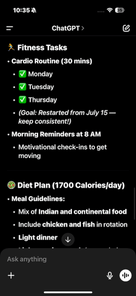 Apart from all this, you can use ChatGPT for a ton of things — studying, planning, writing, brainstorming, acting as a personal health coach, motivator, or even helping you create a career roadmap. Right now, I’m following a 30-day challenge to learn basic Malay.