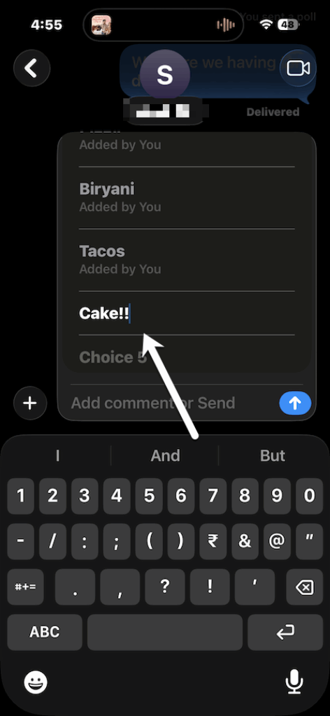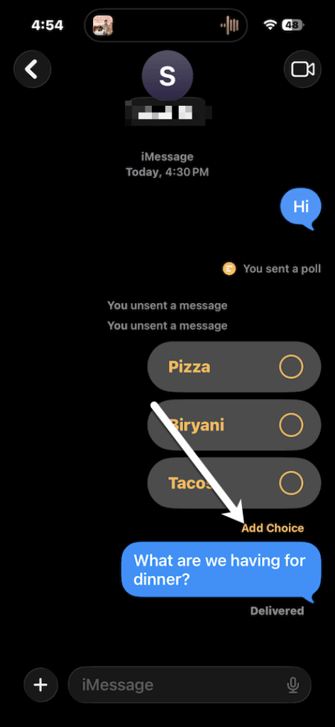 - Add new options: Tap the poll, select Add Choice, and type in your answer.