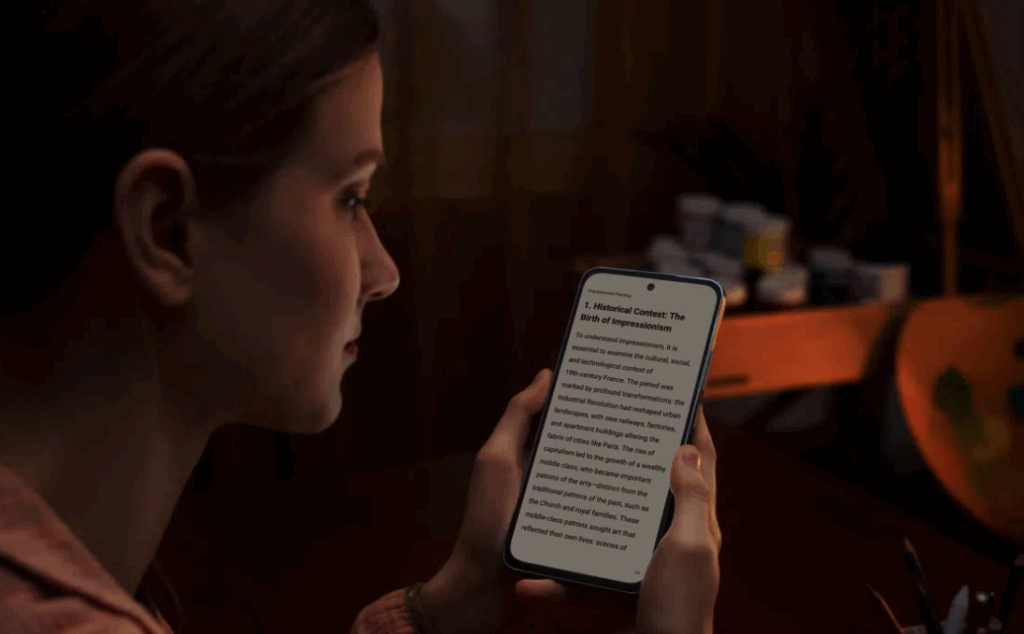 The TCL NXTPAPER 70 Pro packs a dedicated key that lets you instantly switch to an eye-friendly viewing mode. The newest phone from TCL lets you switch between Color Paper Mode, Ink Paper Mode, and Max Ink Mode, with TCL’s signature NXTPAPER eye care technology. These are classic monochrome modes that let you have immersive and distraction-free reading.